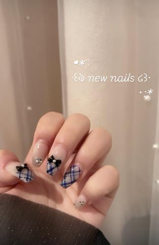 ネイル変えました🥰青のチェックがお気に入りです🐰